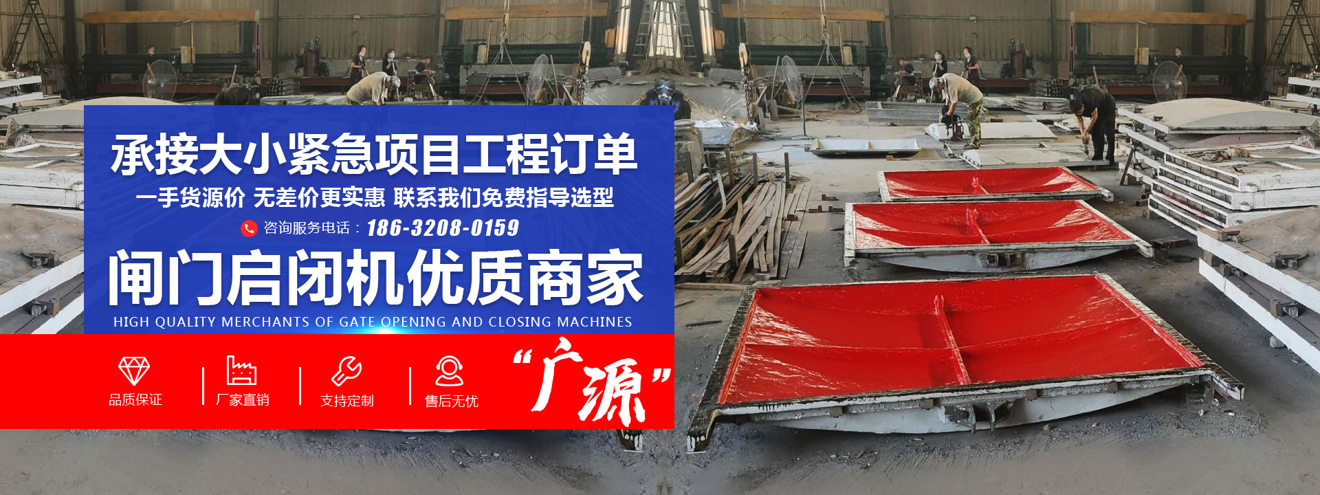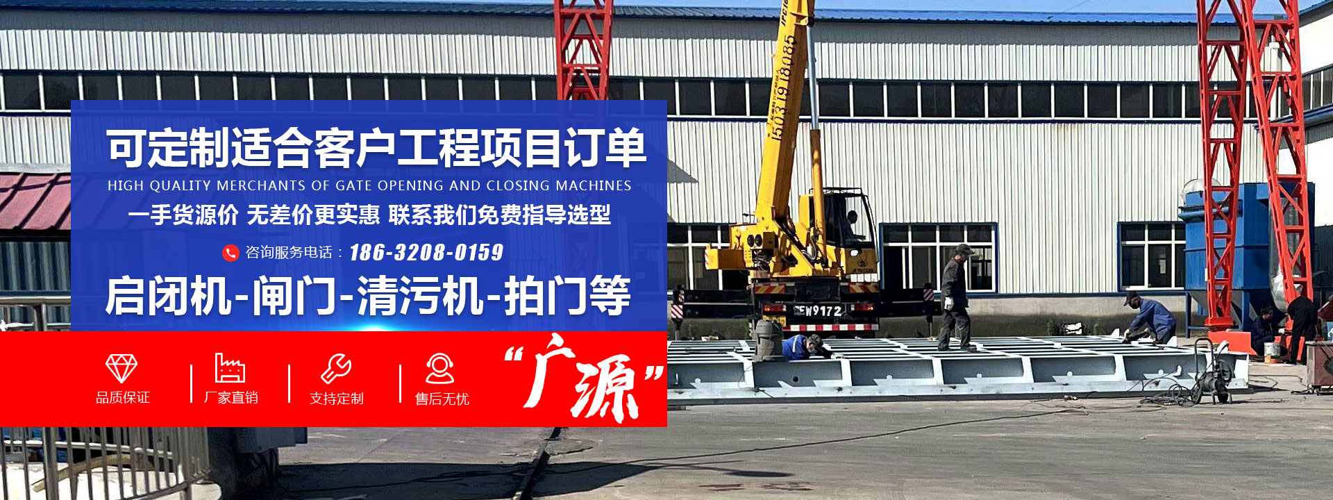 新河縣廣源水利機械有限公司是從事水工機械啟閉機、閘門、螺桿式啟閉機、固定卷揚式啟閉機、移動卷揚式啟閉機、鑄鐵閘門、鋼制閘門、不銹鋼閘門、拍門、回轉清污機、格柵清污機及粉碎清污機,攔污柵、橡膠止水的專業制造、生產及指導安裝的綜合性廠家,是制造、銷售、安裝一體化的規模型水利工程機械生產企業。   我廠主導產品:   1、螺桿式啟閉機0.3-100T;手推帶鎖式螺桿啟閉機;手輪啟閉機;QLP平推螺桿式啟閉機0.5-2T;QLF三防型全封閉磁力鎖螺桿式啟閉機0.3T-30T;QLC側搖螺桿式啟閉機0···