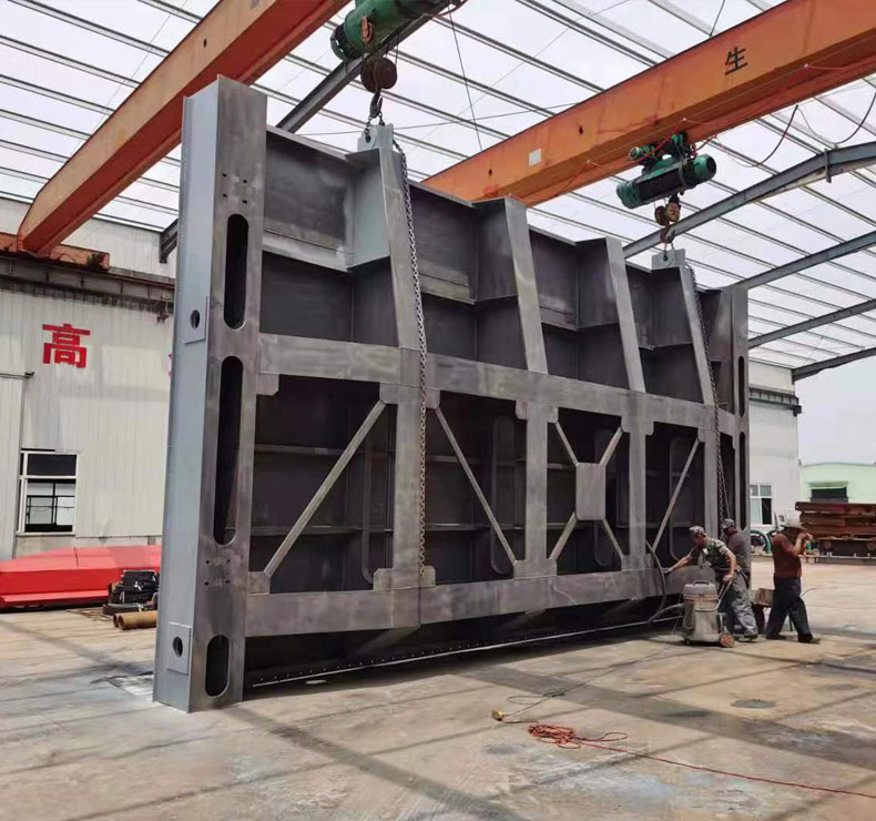 鋼閘門是給排水工程、水利、水電工程中常用的攔水、止水設備,由門框、閘板、密封圈及可調式鍥型壓塊等部件組成。鋼閘門久用磨損后,其密封面可通過鍥型壓塊的調整來保證正常工作。鋼制閘門以優質鋼板為基材,采用橡膠止水、防腐方式為表面進行噴沙除銹及熱噴鋅,鋼閘門具有結構合理堅固、耐磨耐蝕性強、性能可靠;安裝、調整、使用、維護方便等特點。